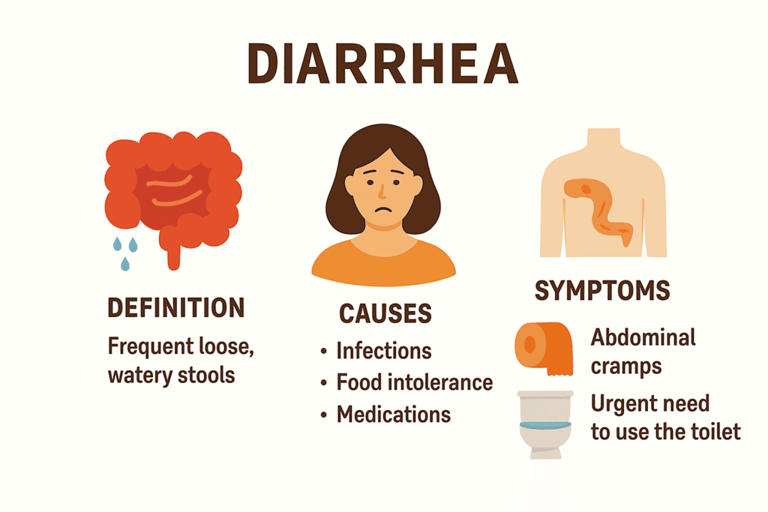 Diarrhea is a digestive condition characterized by loose, watery stools occurring more frequently than normal. It can be acute (short-term) or chronic (long-term) and may be accompanied by other gastrointestinal symptoms.